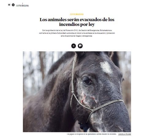 El Salto de Extremadura Los animales serán evacuados de los incendios por ley (marzo de 2019)